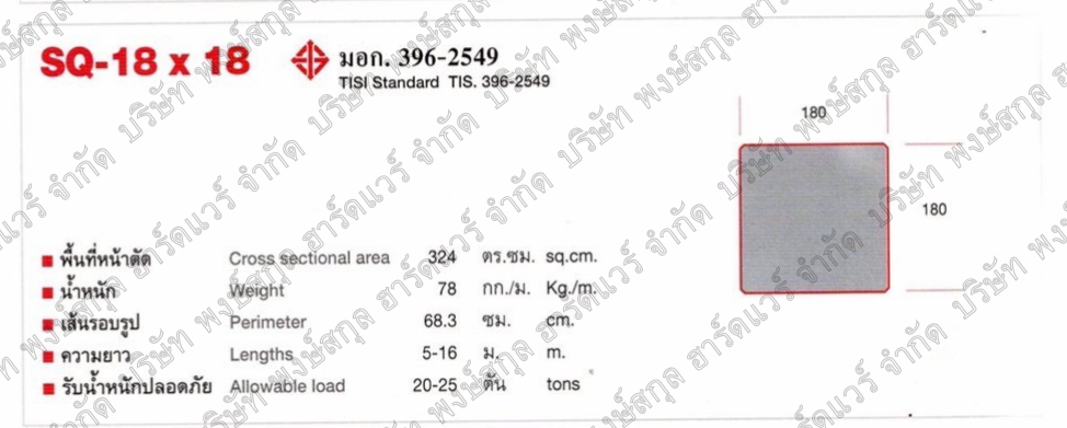ขนาดหน้าตัด 18 x 18 ซม.