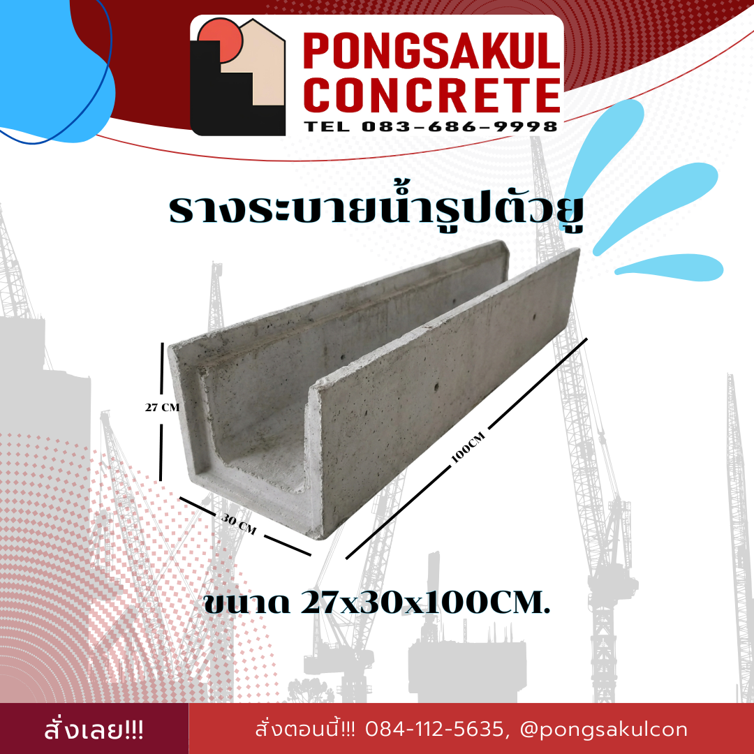 รางระบายน้ำรูปตัวยู ขนาด 27x30x100 เซนติเมตร เป็นรางคอนกรีตสำเร็จรูปที่ออกแบบมาเพื่อรองรับการระบายน้ำในพื้นที่ต่าง ๆ เช่น งานถนน งานโรงงาน ลานจอดรถ หรือรอบอาคาร โดยมีลักษณะเป็นรูปตัว U ซึ่งช่วยให้การไหลของน้ำเป็นไปได้สะดวก และ ลดปัญหาน้ำขัง